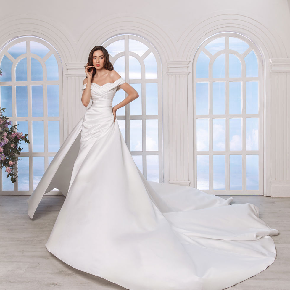 Vestido de novia corte sirena falda desmontable, en raso satín.
